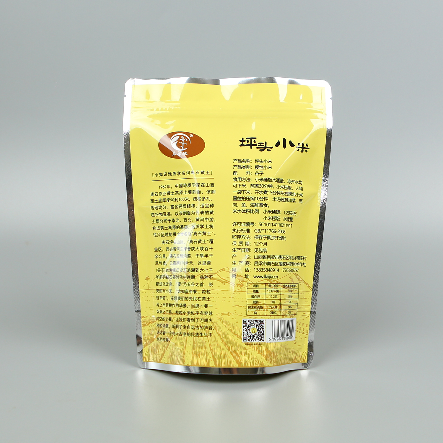 产品名称:500g坪头小米+亮面阴阳铝+自立拉链袋